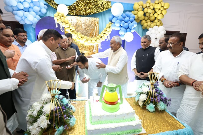 Tejashwi Yadav Birthday Photos अपने 34वें जन्मदिन के उपलक्ष्य में तेजस्वी यादव ने विधानसभा सत्र की समाप्ति के बाद भोज दिया था। इस भोज में कई दिग्गज नेता शामिल हुए थे। लालू प्रसाद और मुख्यमंत्री नीतीश कुमार भी शामिल हुए थे। इनके अलावा तेज प्रताप यादव जगदानंद सिंह भोला यादव चितरंजन गगन के साथ ही रामचंद्र पूर्वे एजाज अहमद समेत दूसरे नेता व कार्यकर्ता उपस्थित रहे।