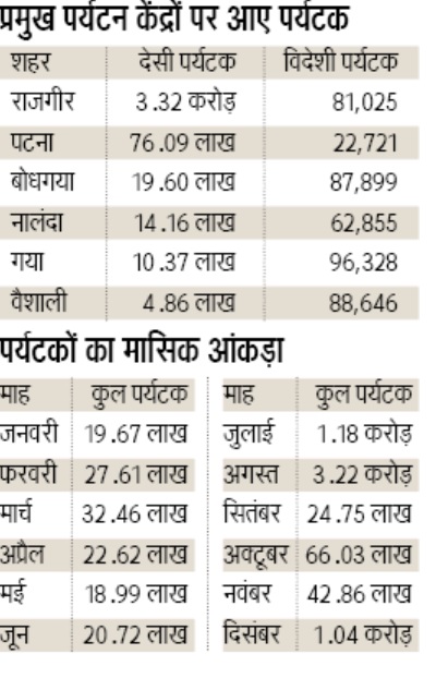 उस साल दस लाख 93 हजार विदेशी बिहार आए थे। इस हिसाब से वर्ष 2023 में विदेशी सैलानियों का आंकड़ा लगभग आधा ही है।