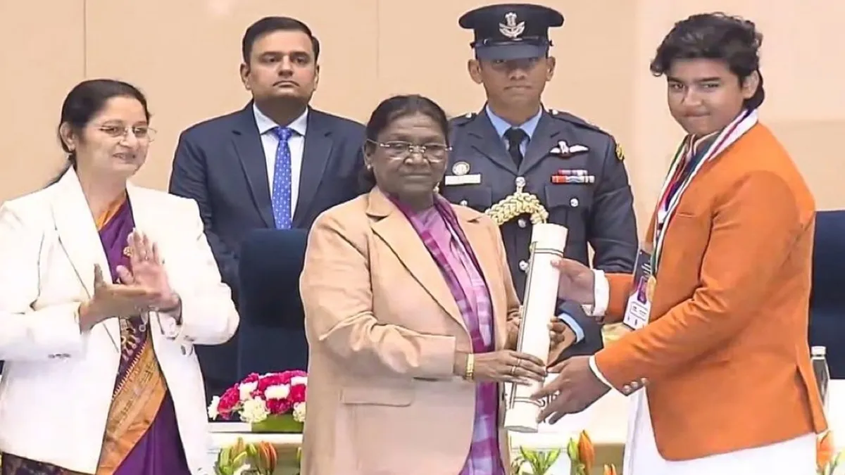 राष्ट्रपति द्रौपदी मुर्मु से पुरस्कार प्राप्त करते वैभव सूर्यवंशी। एक्स
