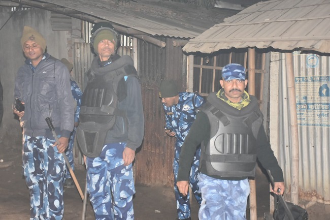 छापेमारी के दौरान महिला पुलिसकर्मी।