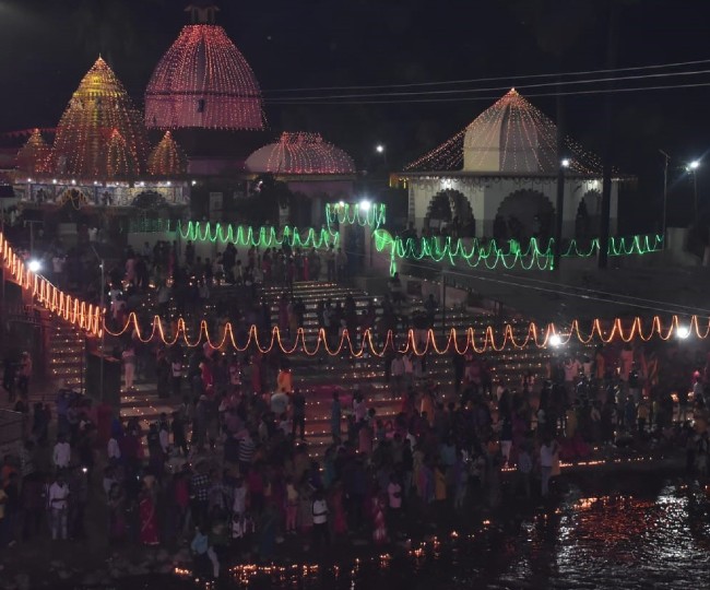 Dev Deepawali in Purnia - श्रीराम सेवा संघ के तत्वावधान में आयोजित हुआ कार्यक्रम। बनारस से आए पंडितों ने की महाआरती। झिलमिलाते दीयों से बनाई गई भगवान राम का प्रतिबंब व रंगाली बना था आकर्षण का केंद्र। मनमोहक हुआ नदी तट का नजारा।