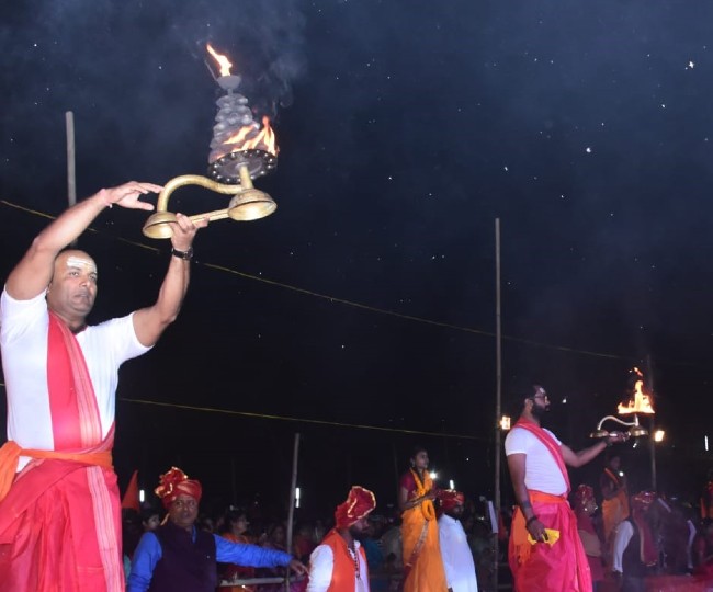 कार्तिक पूर्णिया के अवसर पर बनारस से आए पंडितों एवं पुरोहितों द्वारा वैदिक मंत्रोच्चारण के साथ देव दीपावली के रूप में कोसी महाआरती की गई। मौके पर शंख ध्वनि से पूरा वातावरण गुंजायमान हो गया। इसके बाद धूप और दिए लेकर कोसी की आराधना की गई।