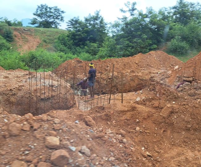 रोप वे निर्माण का बेस तैयार करते श्रमिक। जागरण