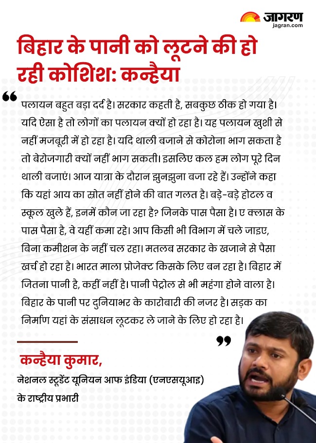 एक ओर जहां कन्हैया कुमार के सभा मंच को गंगाजल से धोया गया, वहीं दूसरी तरफ बिहार में बन रही सड़कों और बिहार का पानी लूटने को लेकर दिए गए बयान के बाद वे विपक्ष के निशाने पर आ गए थे।