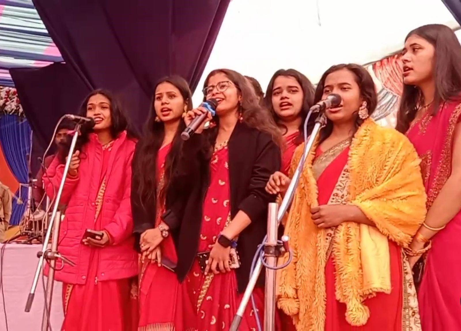 कार्यक्रम में स्वागत गान प्रस्तुत करती छात्राएं।