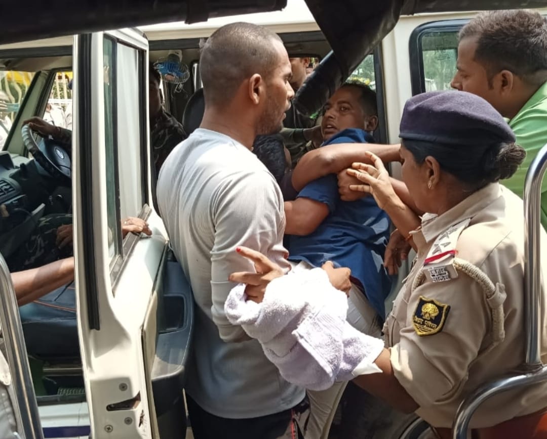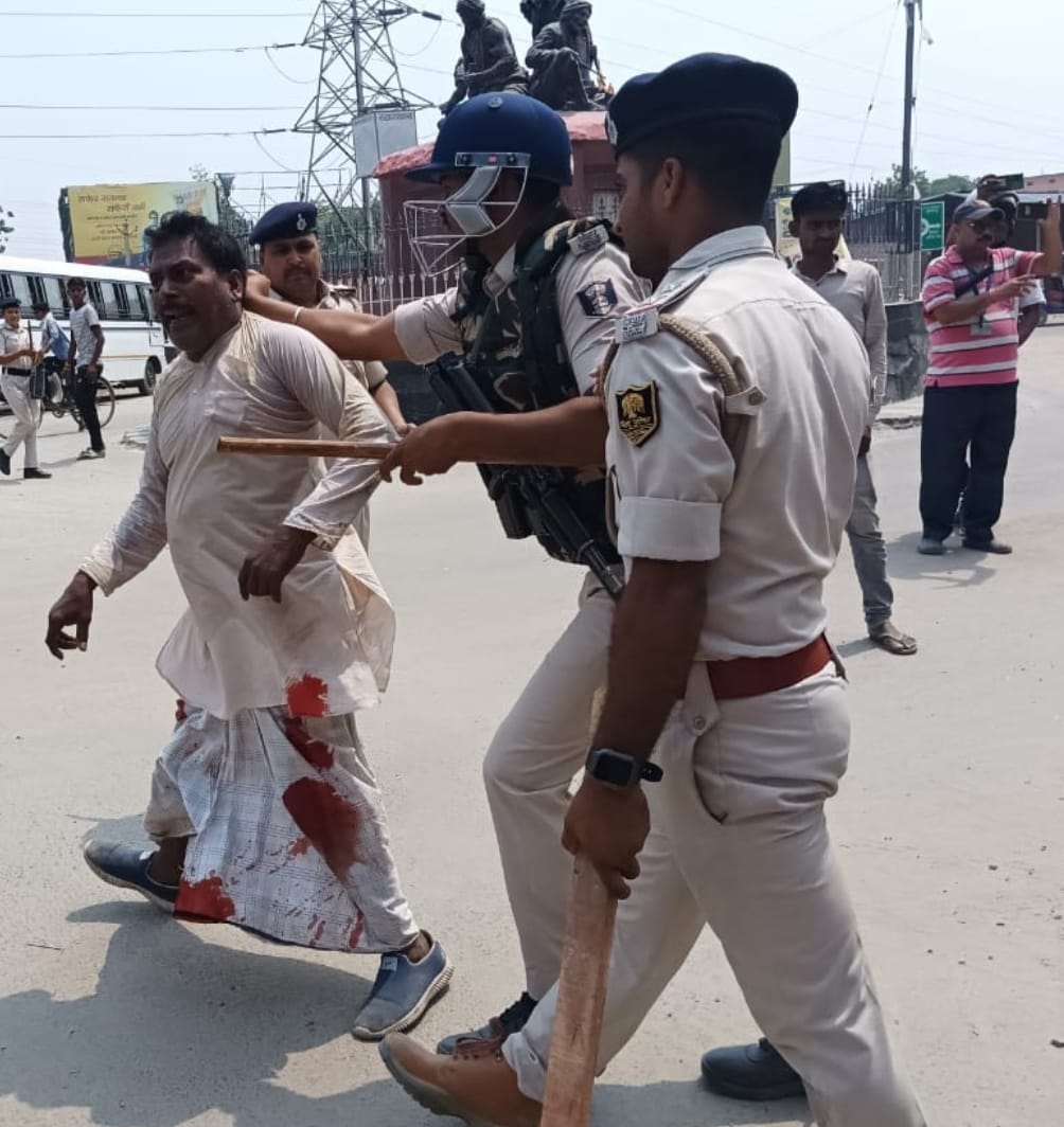 भिखारी ठाकुर चौक हंगामा कर रहे लोगों गिरफ्तार करती पुलिस