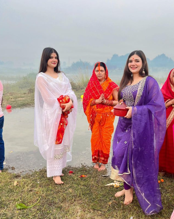 छठ पूजा पर अपने परिवार के साथ स्वाति मिश्रा। फोटो- इंस्टाग्राम
