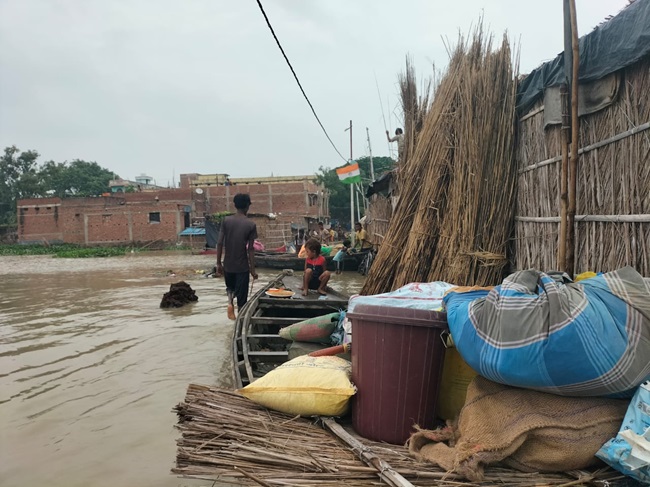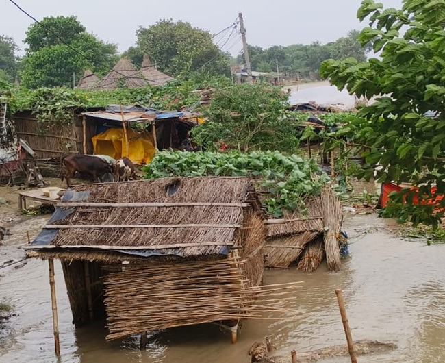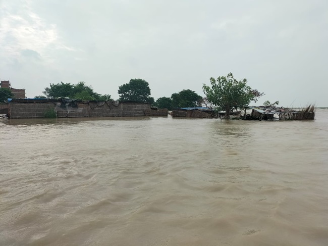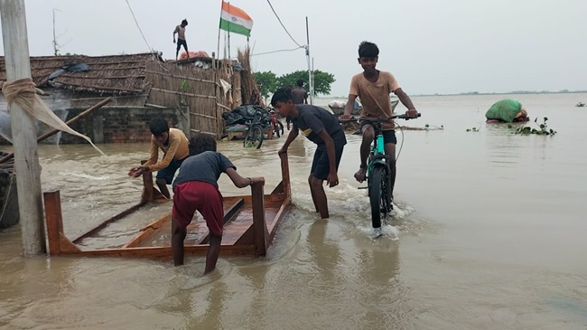 सारण के डोरीगंज में तटीय इलाके में फैला बाढ़ का पानी