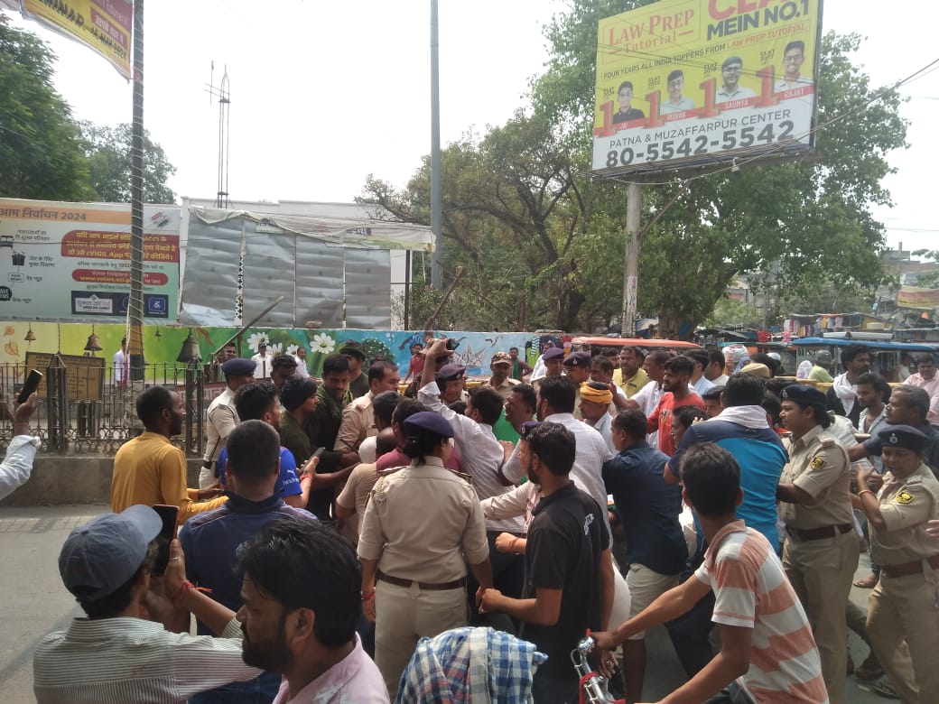 शहर के थाना चौक पर हंगामा करते मृतक के स्वजन