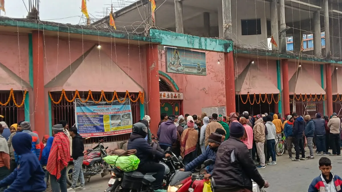मशरक मंदिर में चोरी की घटना के बाद उमड़ी भीड़