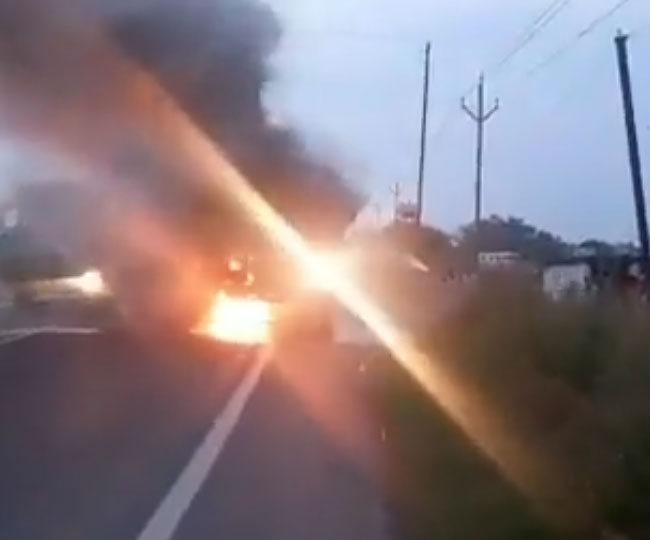 गृह मंत्री अमित शाह के कार्यक्रम से लौट रही पुलिस बस ने बाइक सवार युवकों को रौंदा। मरने के लिए छोड़कर भागे पुलिस वाले। हादसे के बाद लगी आग। लोगों के सामने जल गया एक युवक। बिहार के सारण (छपरा) जिले के रिविलगंज में देवरिया गांव के पास हादसा। सिताब दियारा में जेपी जयंती के बाद pic.twitter.com/kBxZdDSetD