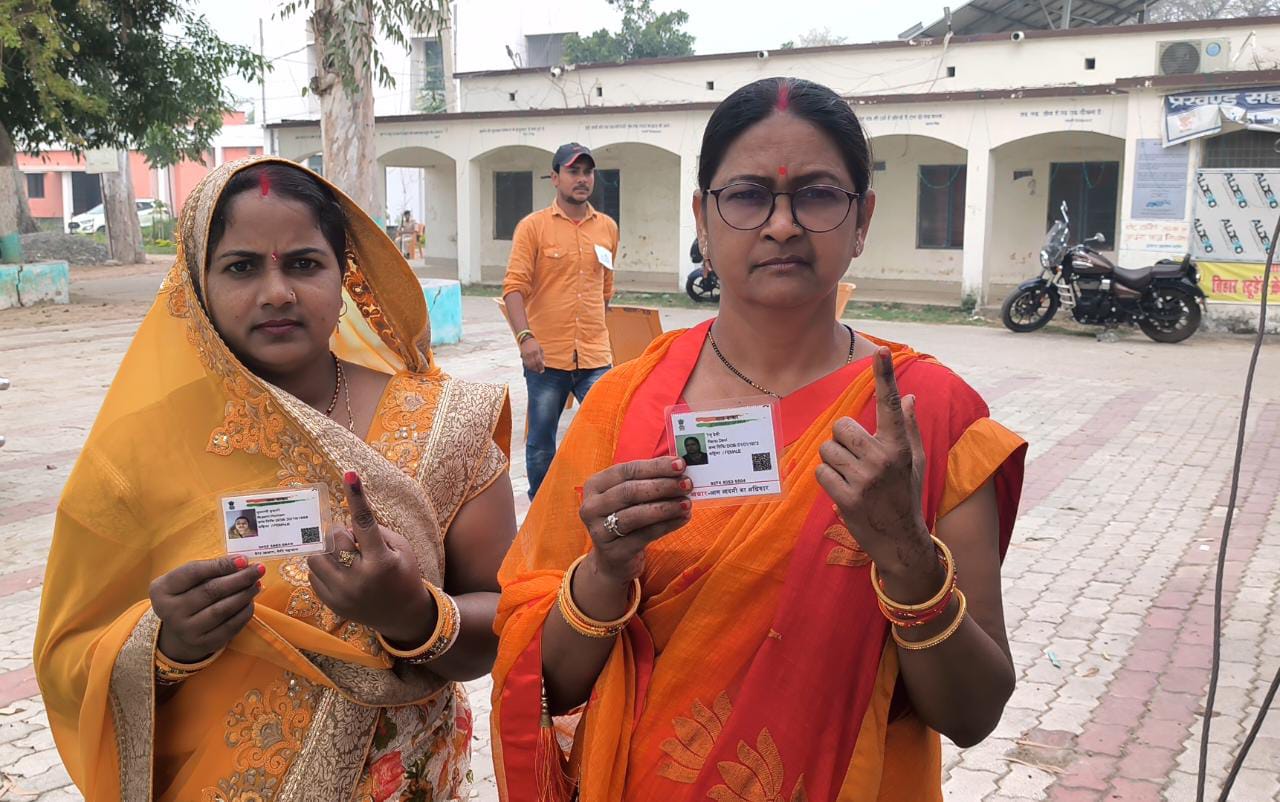 मढ़ौरा में मतदान कर निकलती सारण स्नातक की मतदाता रेणु देवी, सुजाता देवी