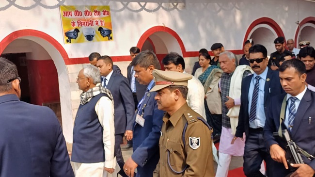 देकुली धाम में शिलान्यास कर बाहर निकलते सीएम नीतीश