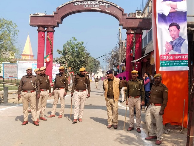 करीब 52 स्थानों पर दंडाधिकारी एवं पुलिस पदाधिकारियों के साथ भारी संख्या में पुलिस बलों को तैनात किया गया है। हेलीपैड से लेकर जानकी जन्म भूमि पुनौराधाम एवं पुनौराधाम से लेकर संवाद स्थल तक चप्पे-चप्पे पर पुलिस बल तैनात कर दिए गए हैं।
