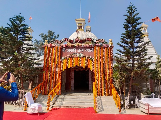 रक्षा मंत्री के आगमन से पूर्व फूलों से सुसज्जित जानकी जन्म भूमि सीता मन्दिर।