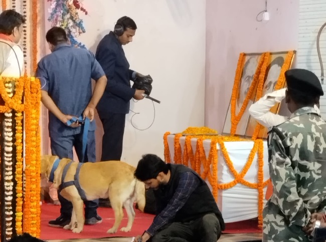 संवाद मंच की स्वान दस्ता की मदद से जाँच करते सुरक्षा कर्मी।