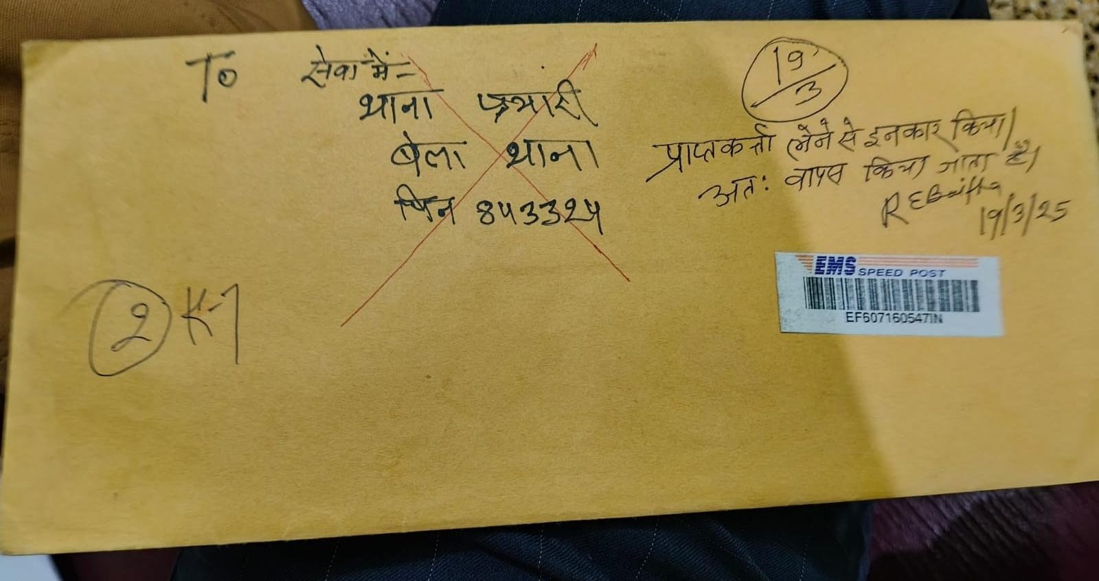 स्पीड पोस्ट से भी थानाध्यक्ष ने नहीं लिया आवेदन