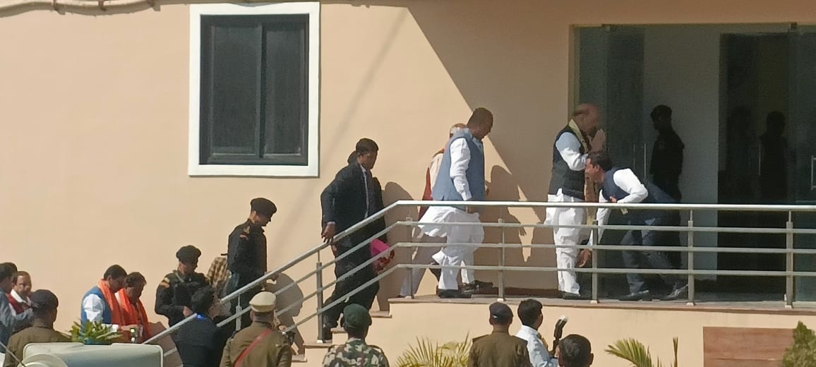 मंगलवार को डीएम मुकुल कुमार गुप्ता व एसपी अमितेश कुमार ने संयुक्त रूप से पुलिस लाइन में बने हेलीपैड व शहर के परी वाटिका स्थित होटल अशोका रेसीडेंसी कार्यक्रम स्थल का जायजा लिया।