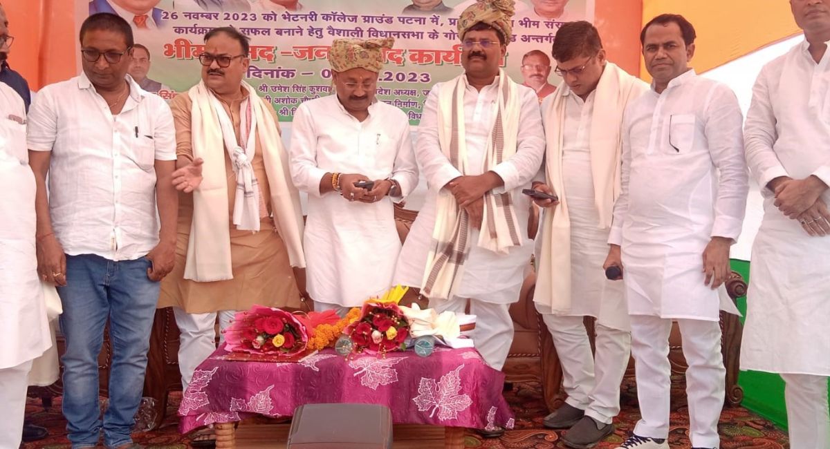 वह रविवार को गोरौल में भीम संसद जनसंवाद कार्यक्रम में बोल रहे थे। इस दौरान सरकार की शिक्षा, कल्याण सहित अन्य विभागों की उपलब्धियों को बताया। आगामी 26 नवंबर 23 को पटना के वेटनरी कालेज में होने वाले कार्यक्रम में ज्यादा से ज्यादा संख्या में भाग लेने की लोगों से अपील की।