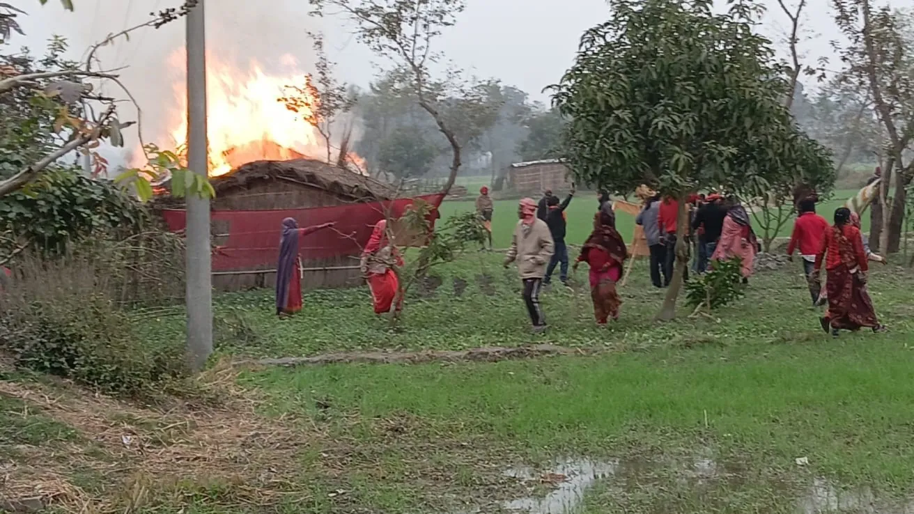 बेतिया में जमीन मापी कराने गई पुलिस टीम को जिंदा जलाने का प्रयास, महिलाओं ने लाठी-डंडों से किया हमला