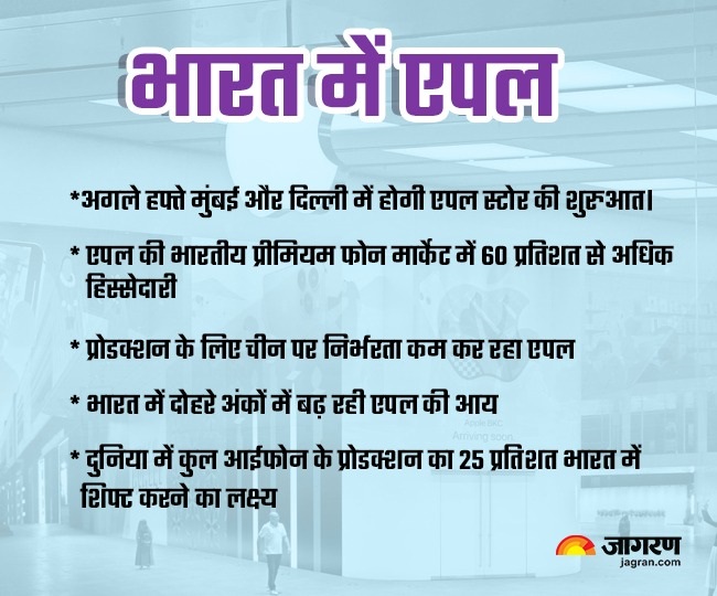 प्रीमियम स्मार्टफोन बनाने वाली कंपनी Apple मुंबई के बीकेसी और दिल्ली के साकेत में अगले हफ्ते रिटेल स्टोर खोलने जा रही है। कंपनी के इस फैसले के पीछे क्या रणनीति है। आइए जानते हैं इस रिपोर्ट में.. (जागरण ग्राफिक्स)