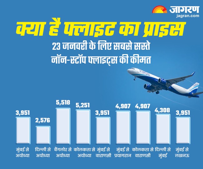 कश्मीर से लेकर कन्याकुमारी तक कई लोग अयोध्या आने के लिए फ्लाइट और रेल टिकट बुक कर रहे हैं। अगर आप भी अयोध्या जाने का सोच रहे हैं तो चलिए जानते हैं कि आपके शहर से अयोध्या के लिए फ्लाइट की टिकट कितनी होगी।