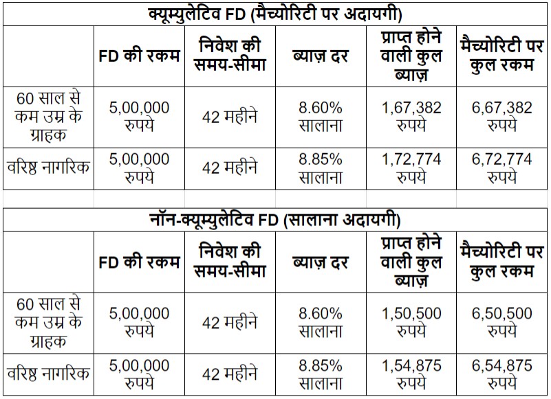 बजाज फाइनेंस FD में 5 लाख निवेश करने के बाद आप कितना ब्याज़ प्राप्त कर सकते हैं, यह समझने के लिए नीचे दिए गए विवरण देखें।