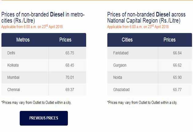 नई दिल्ली (बिजनेस डेस्क)। डीजल की कीमतें अपने ऑल टाइम हाई पर चली गई हैं, जबकि पेट्रोल की कीमत सितंबर 2013 के बाद अपने उच्चतम स्तर पर हैं। यह स्थिति वैश्विक स्तर पर बढ़ते क्रूड के कारण देखने को मिली है। गौरतलब है कि क्रूड ने हाल ही में 74 डॉलर प्रति बैरल का आंकड़ा पार किया है, जो कि आम आदमी के लिए एक अच्छी खबर नहीं कही जा सकती है।