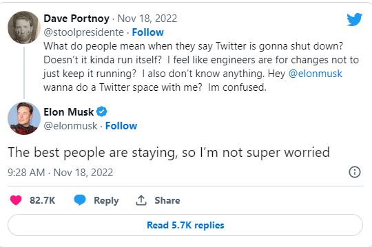 रिपोर्ट में यह भी बताया गया है कि मस्क ट्विटर में अब सीनियर कर्मचारियों को रोकने के लिए लगातार बैठकें कर रहे हैं और उन्हें कंपनी में रोकने की कोशिश कर रहे हैं। वहीं, सूत्रों के हवाले के जानकारी मिली है कि गुरुवार को जिन कर्मचारियों ने ट्विटर को छोड़ा उनमें बड़ी संख्या में इंजीनियर्स शामिल थे, जो कि ऐप के बग को ठीक करने आदि का काम करते थे।