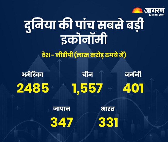 भारत की जीडीपी 2000 में करीब 468 अरब डॉलर था। यह सिर्फ सात साल बाद यानी 2007 में एक लाख करोड़ डॉलर तक पहुंच गई। अगले सात साल में यह दो लाख करोड़ डॉलर हो गई। अब 2024 में भारत दुनिया की पांचवीं सबसे बड़ी इकोनॉमी बन चुका है। हमारी जीडीपी का साइज 3.89 लाख करोड़ डॉलर है। यह रुपये में करीब 331 लाख करोड़ रुपये होता है। भारत का अगला लक्ष्य 2027-2028 तक पांच लाख करोड़ डॉलर के जीडीपी के साथ दुनिया की तीसरी सबसे बड़ी अर्थव्यवस्था बनने का है।