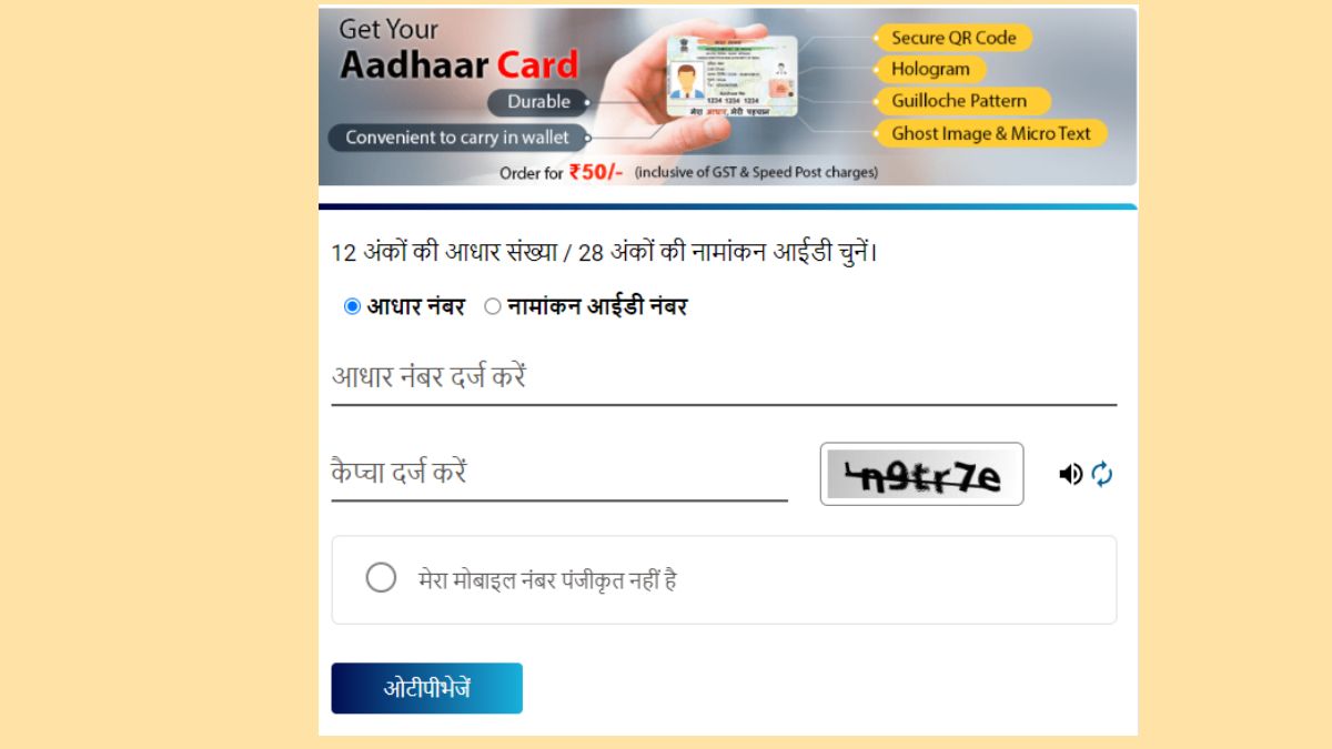 - अब आधार नंबर, कैप्चा एंटर करना होगा।