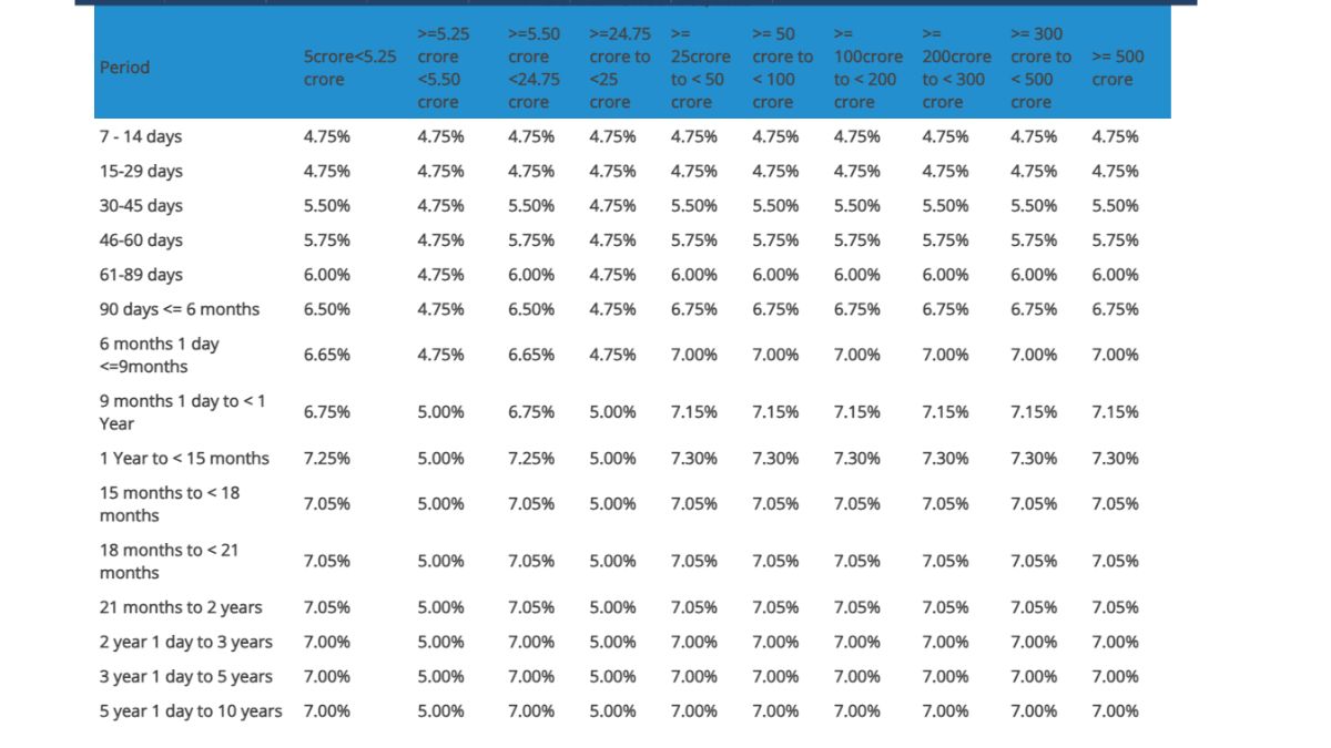 - 7-14 दिन की एफडी पर सभी नागरिकों के लिए अलग-अलग राशि पर ब्याज दर 4.75 फीसदी रहेगी।
