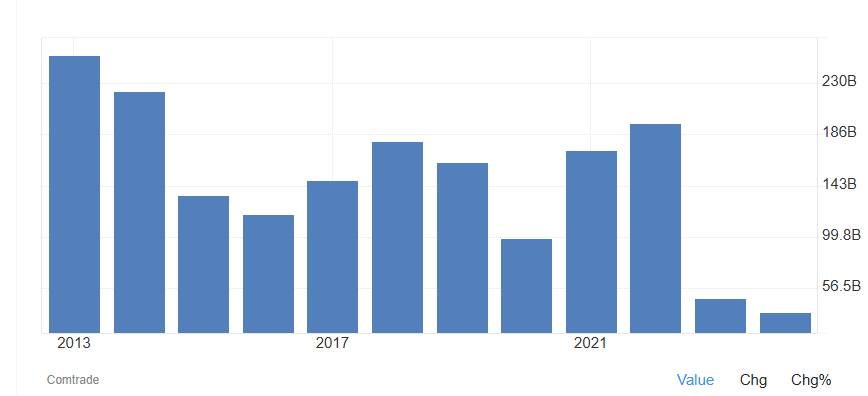 Trading Economics की रिपोर्ट के अनुसार 2014 में जब रूस ने क्रीमिया पर कब्जा किया और 2022 में जब रूस ने यूक्रेन पर आक्रमण किया, तब यूरोप ने रूस से 1.4 ट्रिलियन डॉलर मूल्य (Russia Top Imports) का आयात किया। यूरोपियन यूनियन ने हथियार बनाने में इस्तेमाल होने वाली मशीनों सहित अरबों डॉलर मूल्य के उत्पादों का निर्यात भी किया।
