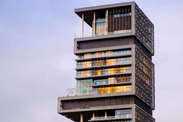 4. वर्तमान में मुकेश अंबानी 27 मंजिला इमारत में रहते हैं, जिसे एंटीलिया (Antilla) नाम दिया गया है। इस इमारत को इस ढंग से बनाया गया है कि 27 मंजिला इमारत में तकनीकी रूप से 60 मंजिलें हैं। एंटीलिया 4,00,000 वर्ग फुट के क्षेत्र में है और इसकी कीमत लगभग 15,000 करोड़ रुपये है। यह बकिंघम पैलेस के बाद दुनिया की दूसरी सबसे महंगी आवासीय संपत्ति बन गई है।