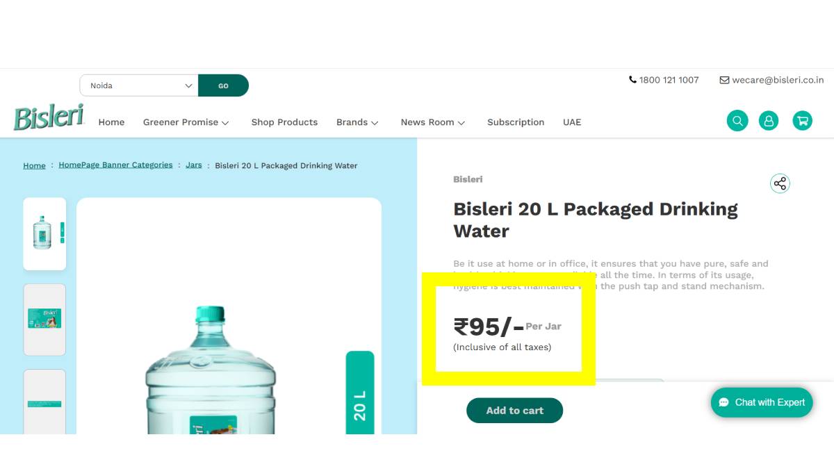 जागरण बिजनेस की टीम ने बिसलेरी की वेबसाइट पर जाकर देखा तो नोएडा में 20 लीटर का जार 95 रुपये का मिल रहा है। यानी 22 सितंबर से इस पर 12% की जगह 5 फीसदी जीएसटी लगने से यह और सस्ता हो जाना चाहिए। लेकिन अभी तक कंपनी की ओर से किसी भी प्रकार की कोई जानकारी नहीं दी गई है।