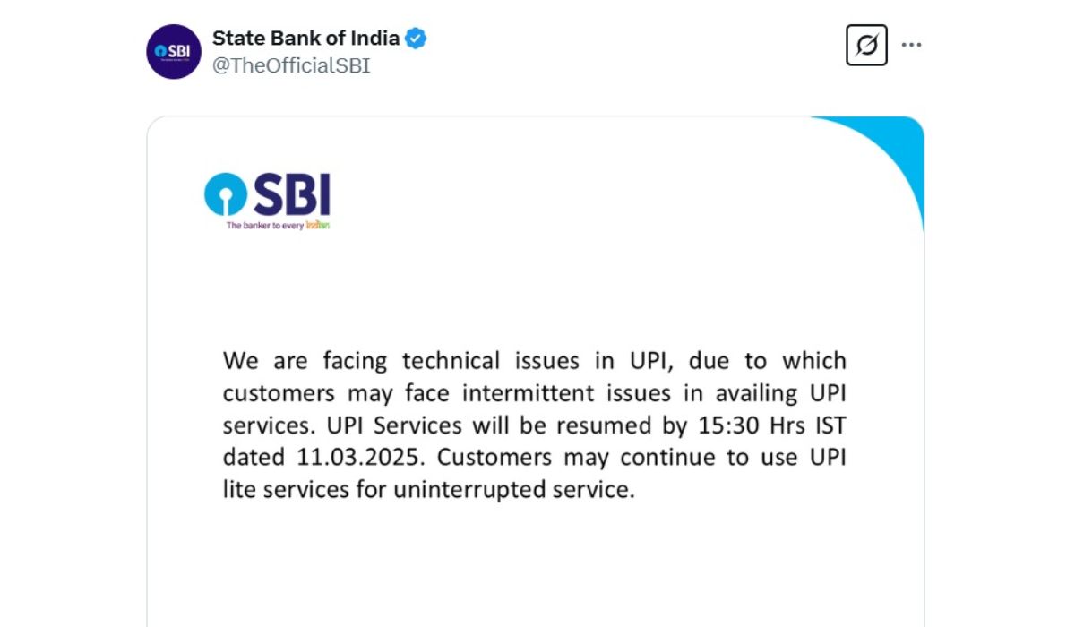 इसके साथ ही बैंक ने ये भी जानकारी दी कि कल यानी 11 मार्च 2025 दोपहर 3 बजकर 30 मिनट पर सभी ऑनलाइन सेवाएं फिर से दुरुस्त हो जाएगी। इस बीच अगर कोई एसबीआई की यूपीआई सर्विस इस्तेमाल करना चाहता है, तो वे एसबीआई के यूपीआई लाइट का इस्तेमाल कर सकता है।
