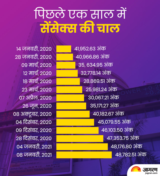 उल्लेखनीय है कि कोरोनावायरस महामारी की वजह से पिछले एक साल में घरेलू शेयरों बाजारों में भी बहुत अधिक उतार चढ़ाव देखने को मिला। साल 2019 के आखिर में सरकार द्वारा उठाए गए विभिन्न कदमों से दिसंबर, 2019 और जनवरी के शुरुआती सत्रों में शेयर बाजार प्रतिदिन नई ऊंचाई को छू रहा था। 16 जनवरी, 2020 को Sensex ने पहली बार 42,000 अंक का आंकड़ा छू लिया था। हालांकि, इसी बीच चीन में कोरोनावायरस के मामलों में तेजी और इस वजह से दुनियाभर में मची उथल-पुथल से बाजार में नरमी का दौर शुरू हुआ। हालांकि, फरवरी तक बहुत अधिक करेक्शन देखने को नहीं मिला लेकिन मार्च आते-आते सेंसेक्स और निफ्टी में एक तरह से भगदड़ मच गई।