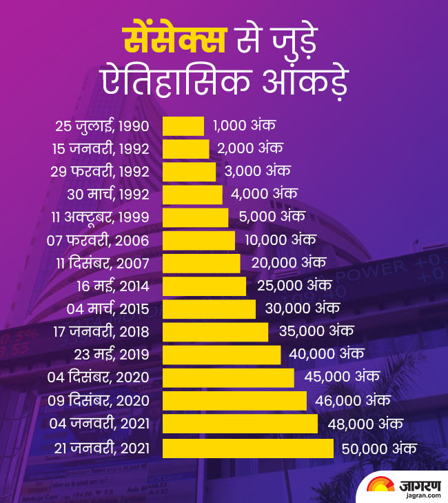 सेंसेक्स ने तीन दशक में छुआ 1,000 से 50,000 तक का आंकड़ा, जानें इससे जुड़े ऐतिहासिक आंकड़े