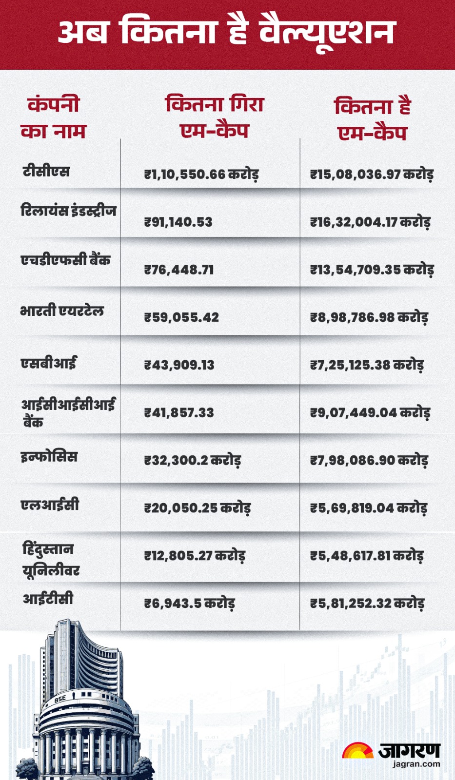 Share Market Update: बिकवाली भरे बाजार में गिर गए टॉप-10 फर्म के एम-कैप, RIL को हुआ तगड़ा नुकसान