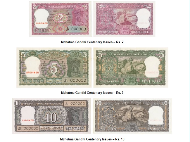 महात्मा गांधी सीरीज के अंतर्गत जारी किए गए बैंक नोट इस प्रकार हैं-