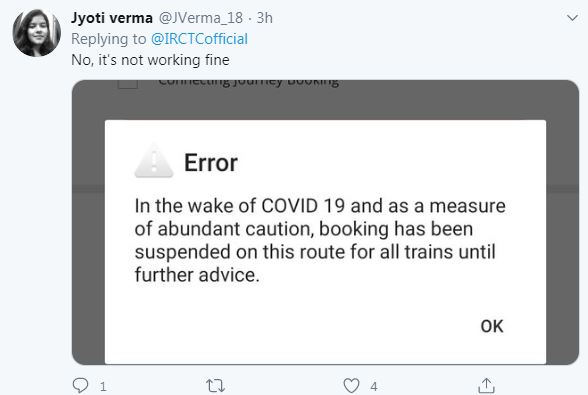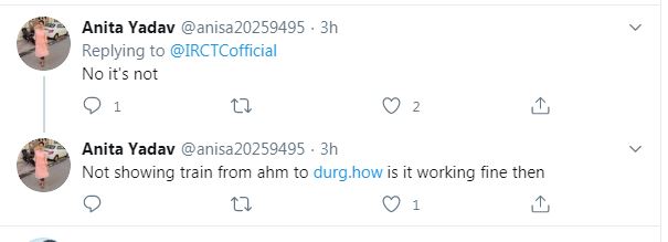 जब हमने खुद IRCTC लॉग इन कर इसकी तस्दीक लेनी चाही तो हमें भी वही दिखा जिसकी शिकायत लगातार यात्री कर रहे थे। हमने 4 जून की तारीख में डिब्रूगढ़ से नई दिल्ली के लिए ट्रेन खोजी, लेकिन हमें वही ट्रेन दिखी जो आज से कुछ दिनों पहले स्पेशल के तौर पर चल रही है। इसके बाद हम IRCTC के ट्वीट के जवाब में गए जहां बहुत सारे लोगों ने वेबसाइट पर ट्रेन नहीं दिखने की शिकायत की थी।