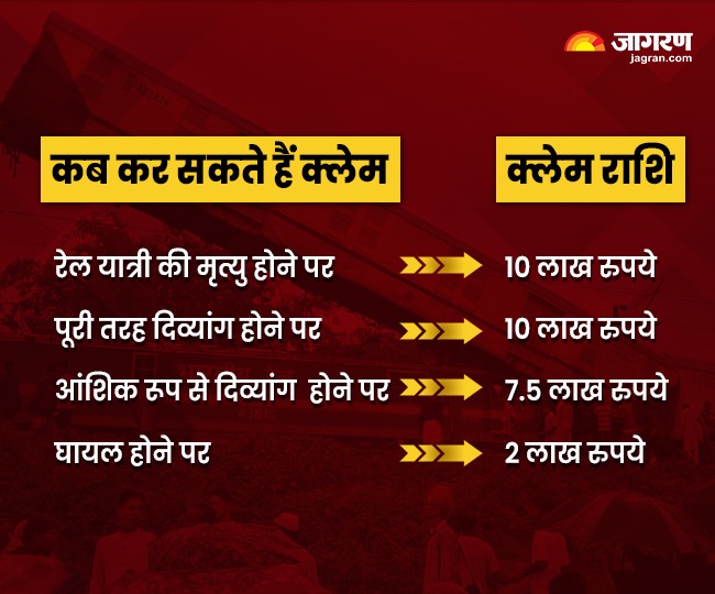 अगर रेल एक्सीडेंट में किसी यात्री की मृत्यु या फिर वह पूरी तरह से दिव्यांग हो जाता है तो उसे 10 लाख रुपये तक का क्लेम मिलता है। वहीं, स्थायी रूप से दिव्यांग यात्री को 7.5 लाख रुपये और घायल यात्री को इलाज के लिए 2 लाख रुपये का क्लेम मिलता है।