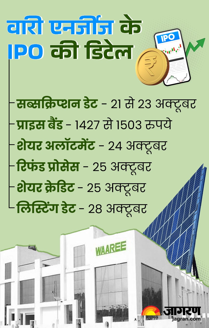 वारी एनर्जीज सोलर पैनल बनाने के लिए मशहूर है। यह सोलर इंडस्ट्री की टॉप कंपनियों में गिनी जाती है। इसके आईपीओ में निवेशक जमकर पैसा लगा रहे हैं। देश के सबसे बड़े आईपीओ हुंडई के उलट वारी एनर्जीज का आईपीओ अब तक 9 गुना से अधिक सब्सक्राइब हो चुका है। इसका जीएमपी भी काफी हाई है। कंपनी ने प्राइस बैंड 1427 से 1503 रुपये प्रति शेयर तय किया है।