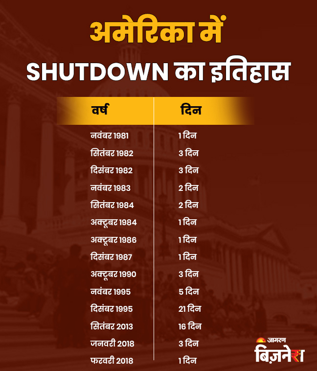 एक और हैरानी की बात है कि इस तरह की नौबत 16 बार आ चुकी है। यूएस में सबसे पहला शटडाउन दो दिन के लिए नवंबर 1981 में हुआ था।