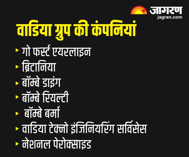 वाडिया समूह की चार कंपनियां स्टॉक एक्सचेंज में लिस्ट है। इन चार कंपनियों के नाम हैं: ब्रिटानिया (एफएमसीजी में 120 साल पुरानी कंपनी जो निफ्टी 50 इंडेक्स में है), बॉम्बे बर्मा ( चाय और अन्य व्यवसायों में 150 साल पुरानी कंपनी), बॉम्बे डाइंग (कपड़ा और रियल एस्टेट में 140 साल पुरानी कंपनी) और एनपीएल (हाइड्रोजन पेरोक्साइड का निर्माता)।