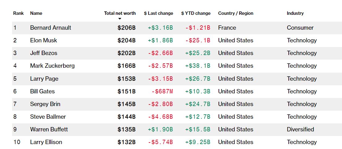 आपको जानकर हैरानी होगी कि एलन मस्क और बर्नार्ड अर्नाल्ट की संपत्ति में केवल 2 अरब डॉलर का अंतर है। इस अंतर की वजह से एलन मस्क दुनिया के दूसरे सबसे अमीर व्यक्ति हैं।
