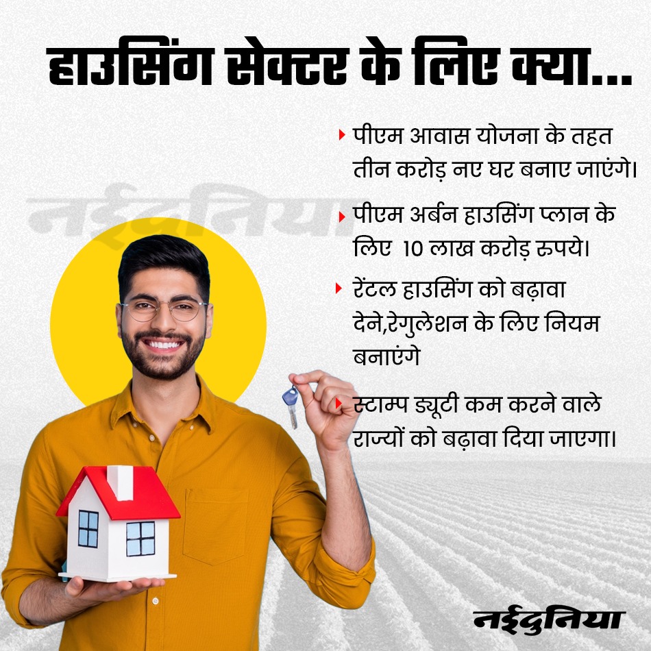 इसके अलावा वित्तमंत्री कहा है कि रेंटल हाउसिंग को बढ़ावा देने पर भी काम किया जाएगा। इसके लिए रेगुलेशन के लिए बनाएं नियम जाएंगे। वित्तमंत्री ने कहा कि जो राज्य स्टाम्प ड्यूटी कम करते हैं, उन्हें बढ़ावा दिया जाएगा। इसके अलावा सस्ते दर पर कर्ज के लिए ब्याज सब्सिडी योजना लाई जाएगी।