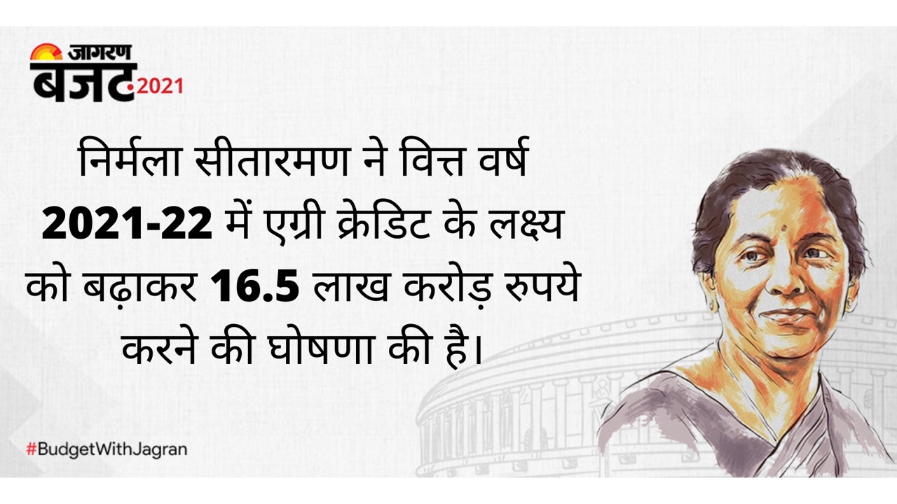 नई दिल्ली, जेएनएन। वित्त मंत्री निर्मला सीतारमण ने बजट 2020-21 में किसानों को एक और बड़ी सौगात दी है। बजट में सरकार ने कृषि लोन (Agriculture Loan) की लिमिट को बढ़ा दिया है। सरकार ने इस बार किसानों को 16.5 लाख करोड़ तक लोन देने का लक्ष्य तय किया है। बजट में सरकार ने पशुपालन, डेयरी और मछली पालन से जुड़े किसानों की आमदनी बढ़ाने पर फोकस किया है।