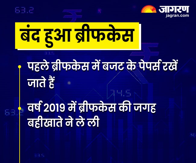बजट पेश करने के लिए वित्त मंत्री ब्रीफकेस में बजट पेपर्स को लेकर संसद आते थे। लेकिन, अब ब्रीफकेस परंपरा भी धीरे-धीरे बंद हो गई। वर्ष 2019 से एक नई परंपरा शुरू हुई है। दरअसल, वर्ष 2019 में वित्त मंत्री निर्मला सीतारमण ने बजट को लाल कपड़े या पाउच में लेकर आई थी। इस लाल कपड़े और पाउच को बही खाता नाम दिया गया।