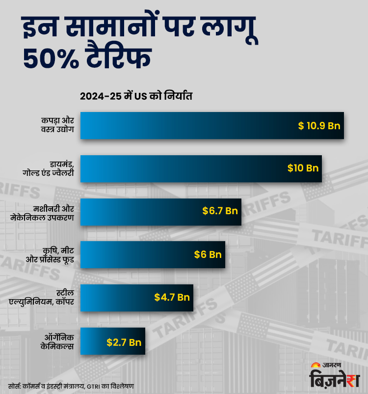 दरअसल, अमेरिका में 50 फीसदी टैरिफ के चलते भारतीय कंपनियों द्वारा निर्यात किए जाने वाले सामान महंगे होंगे, जिसके चलते वहां डिमांड घटेगी। इसका नतीजा यह हो सकता है कि कंपनियों को भारत में उत्पादन घटाना होगा। इससे संबंधित सेक्टर्स प्रभावित होंगे और नौकरियां जाने का खतरा बढ़ सकता है।